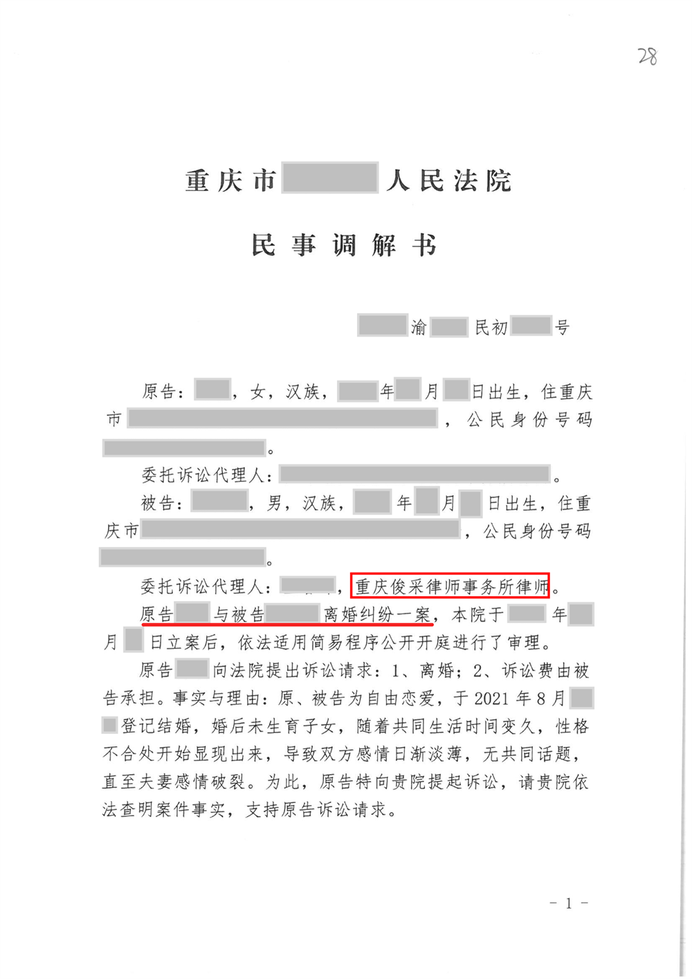 俊采婚姻案例 | 离婚纠纷,和平落幕!