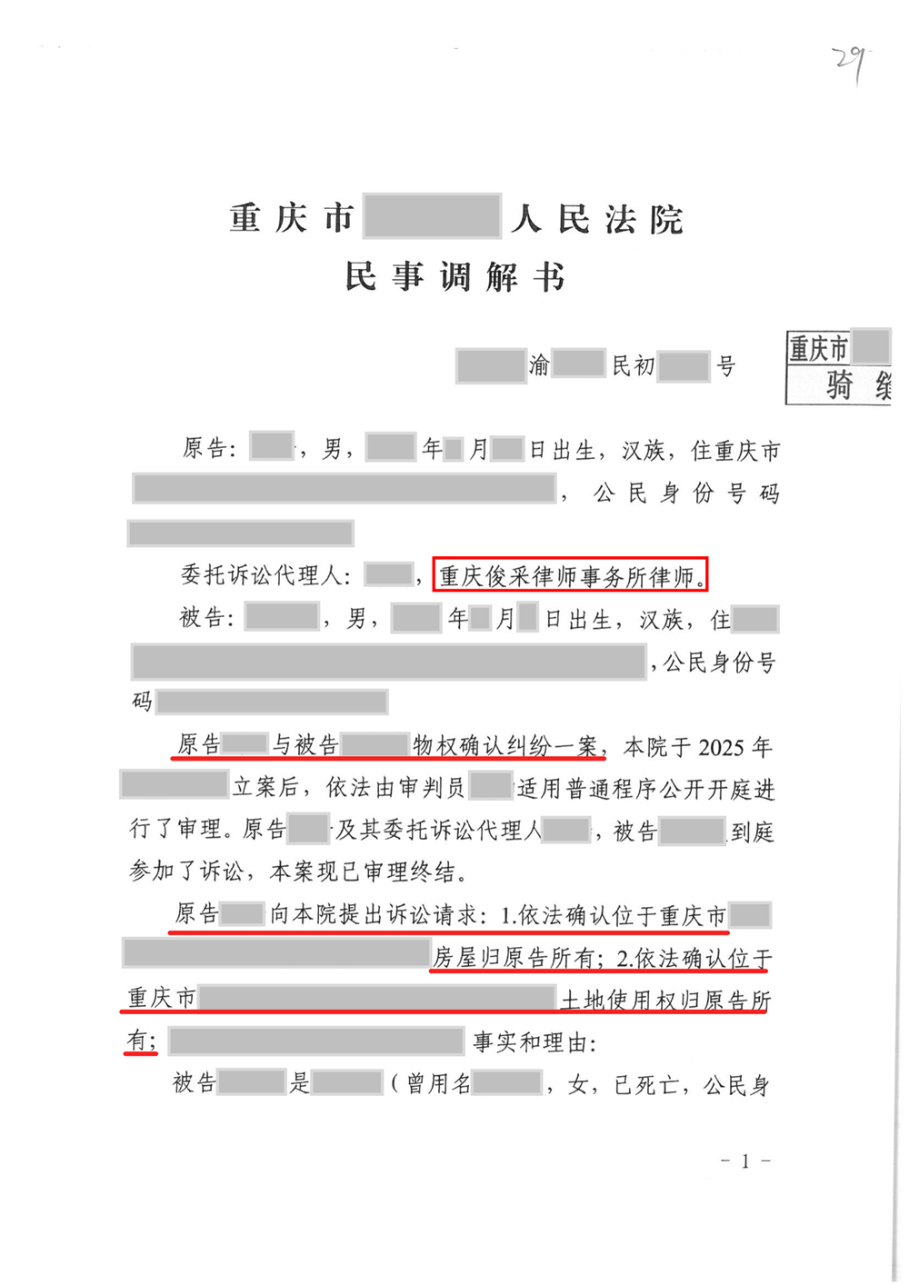 俊采物权确认案例 | 复杂物权纠纷案 俊采律所调解终确权