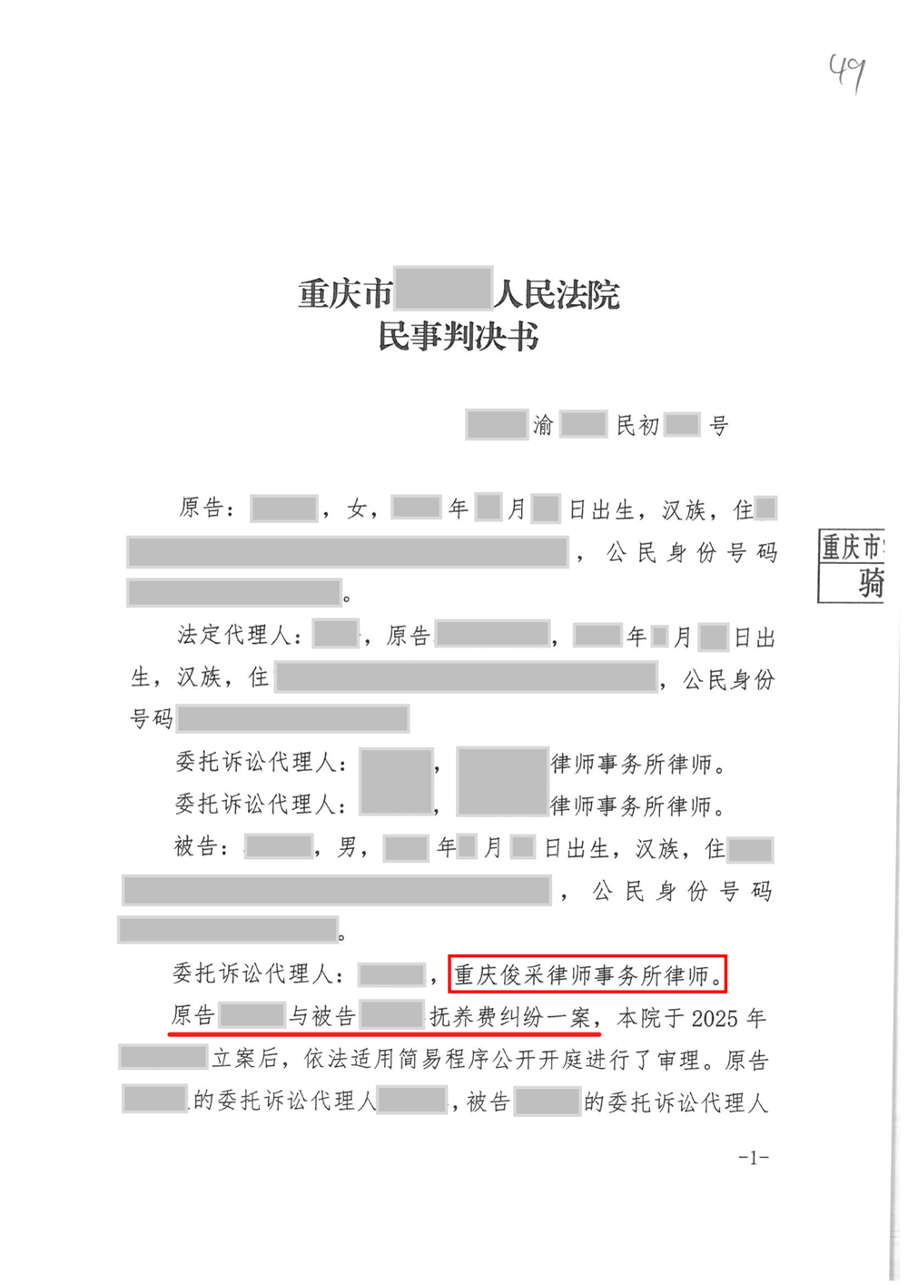 俊采抚养纠纷案例|俊采律所代理,原告74万高额抚养费诉求获合理判决