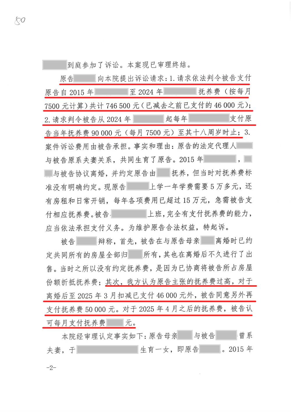 余先生本以为自己已尽到父亲应尽的义务,但在2025年却收到人民法院的传票。张女士和女儿小余作为原告,以抚养费纠纷为由,将余先生起诉至法院,请求判令余先生支付2015年至2024年的抚养费共计74万余元,并要求从2024年起,每年支付抚养费90000元,直至女儿小余年满18周岁。