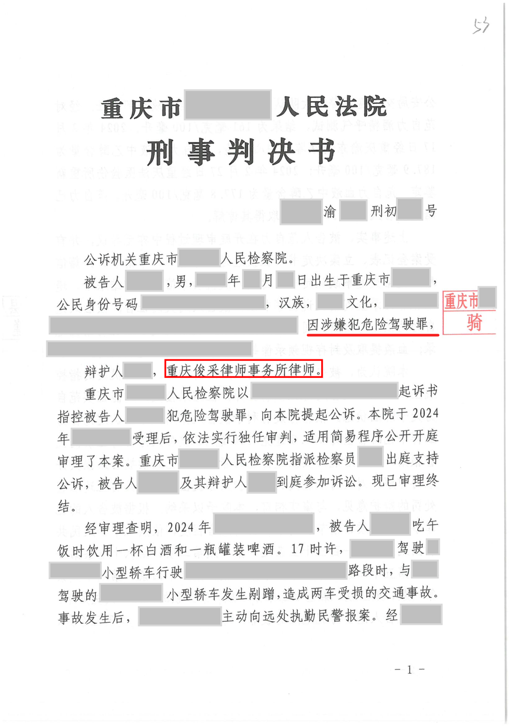 俊采刑辩案例 | 涉嫌危险驾驶罪 律师辩护判缓刑