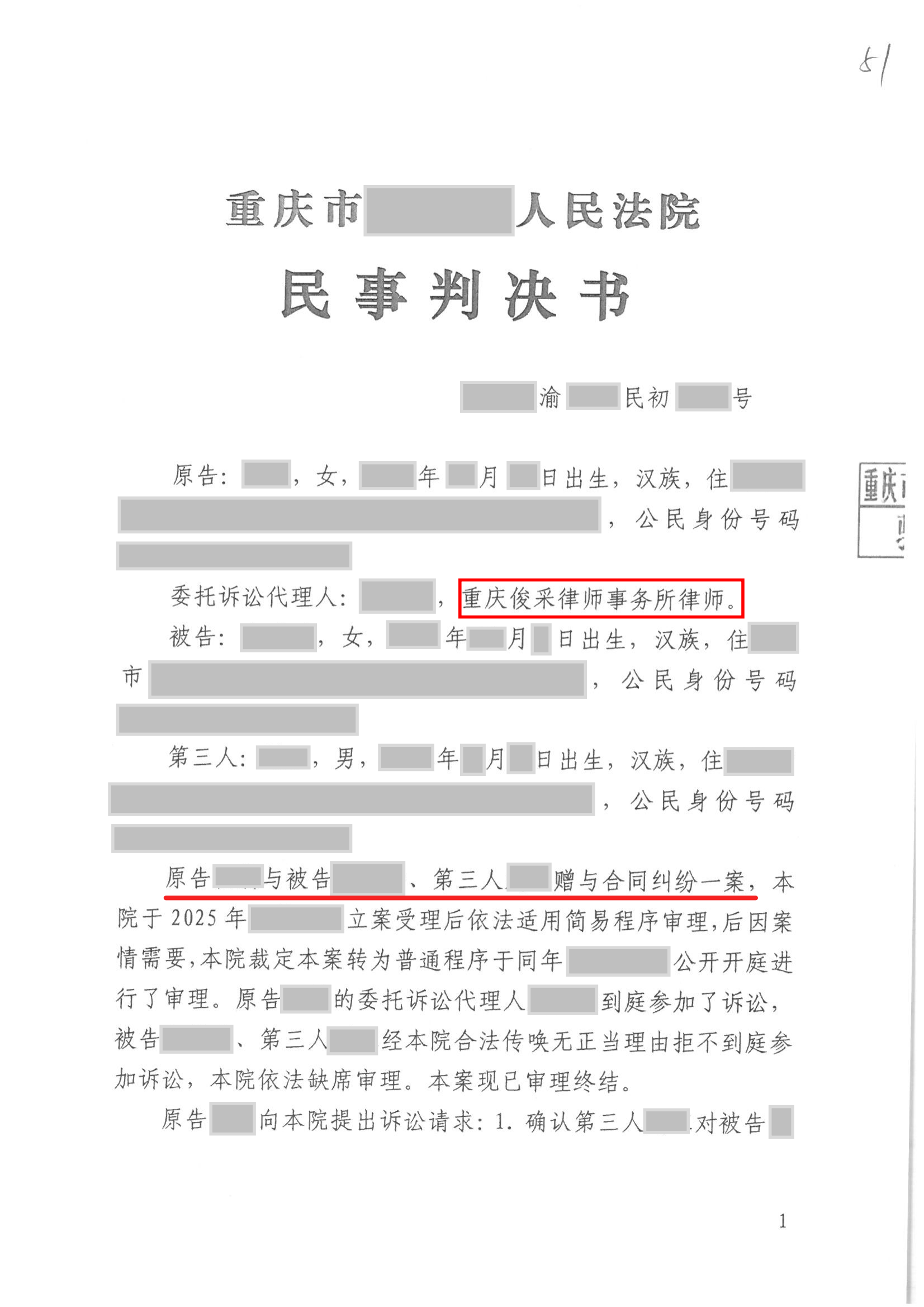 俊采赠予合同纠纷案例 | 丈夫婚内赠与"第三者"12万,法院认定赠与无效全额返还