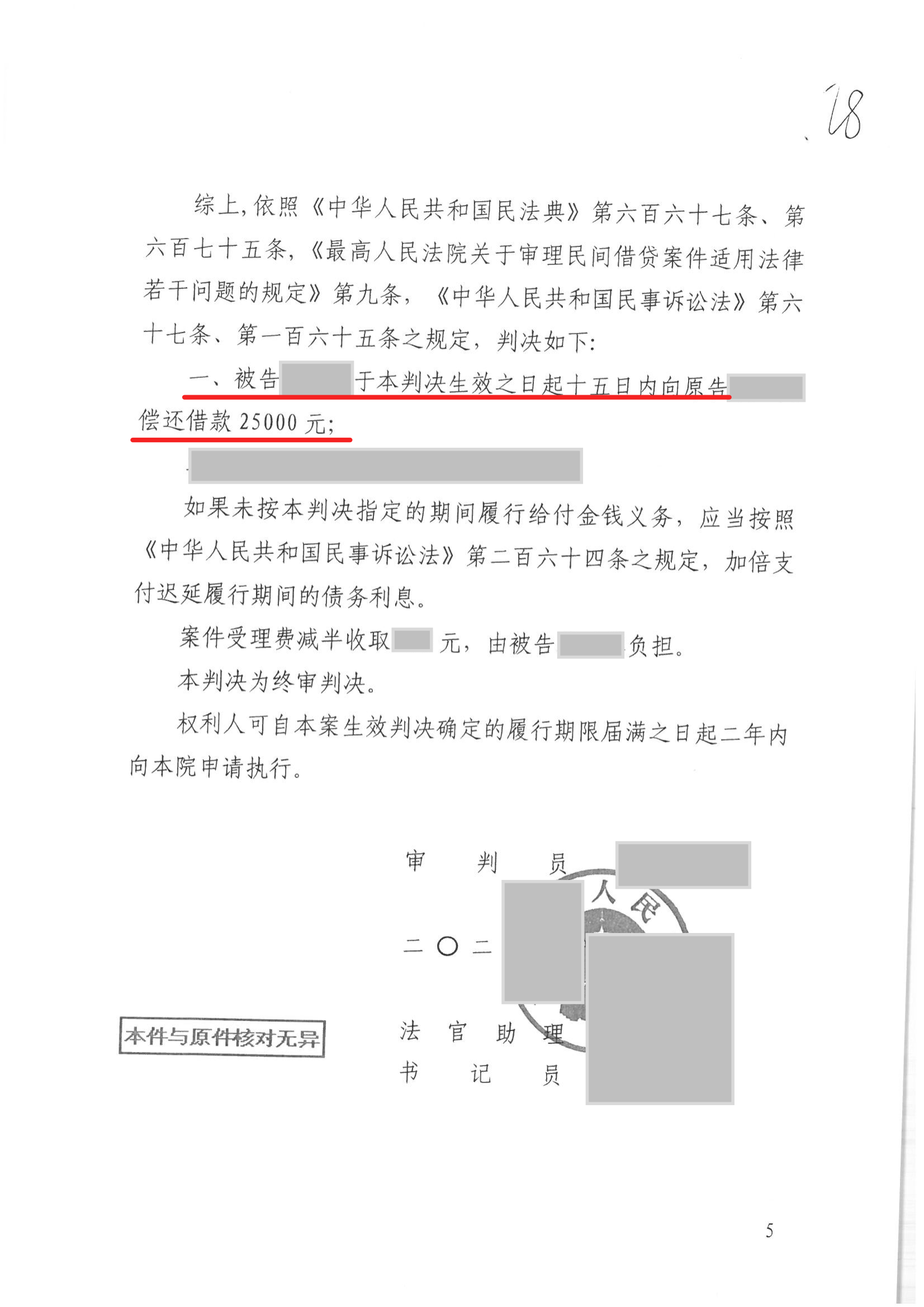 最终法院判决:被告小李于本判决生效之日起十五日内向原告小王偿还借款25,000元。
