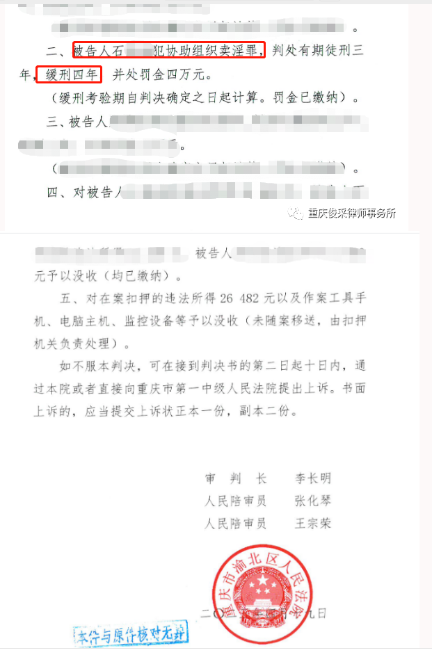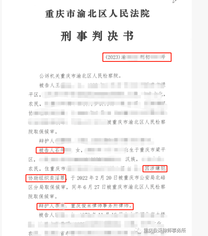 俊采刑事辩护丨石某协助组织卖yin罪,经辩护判缓刑