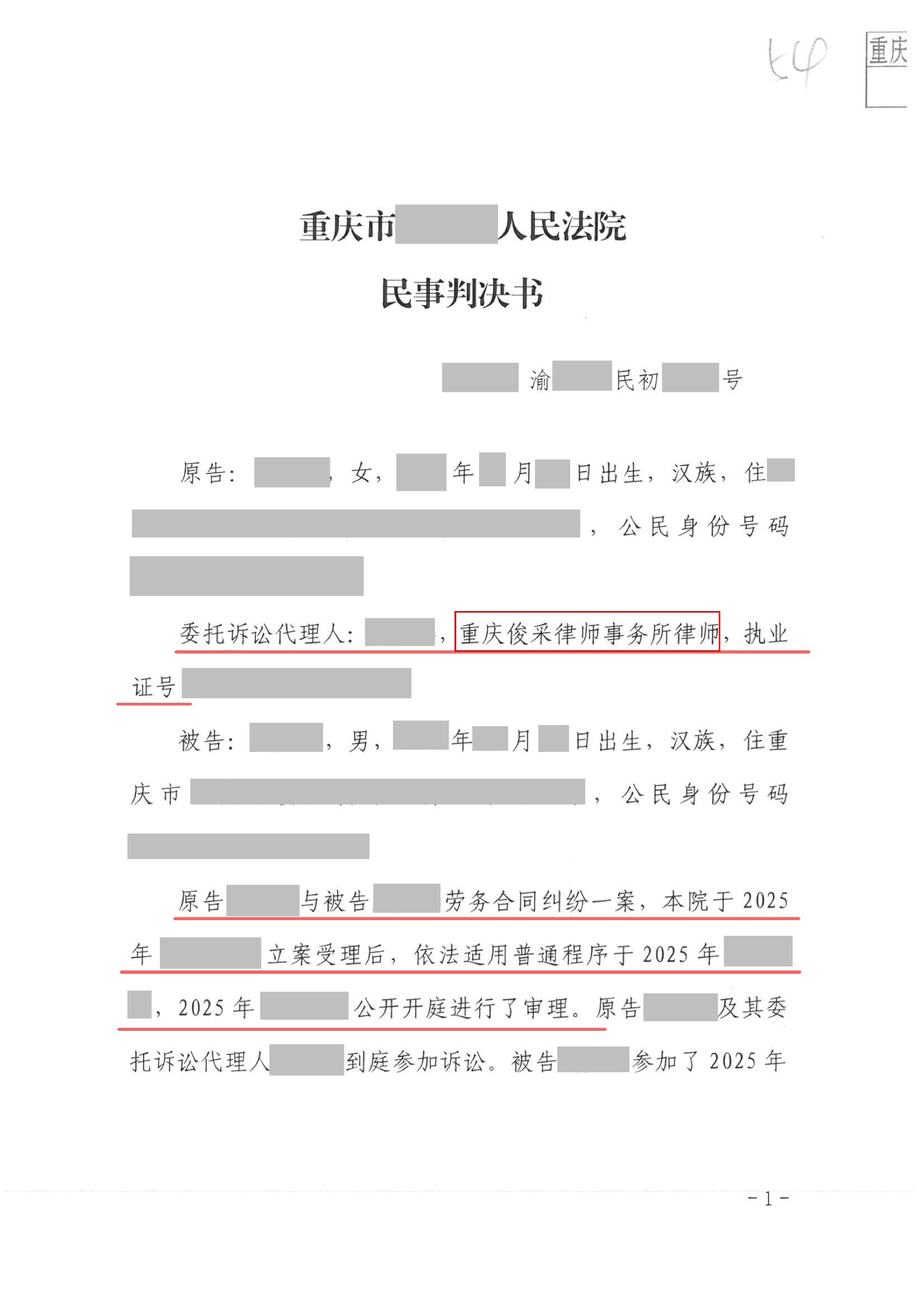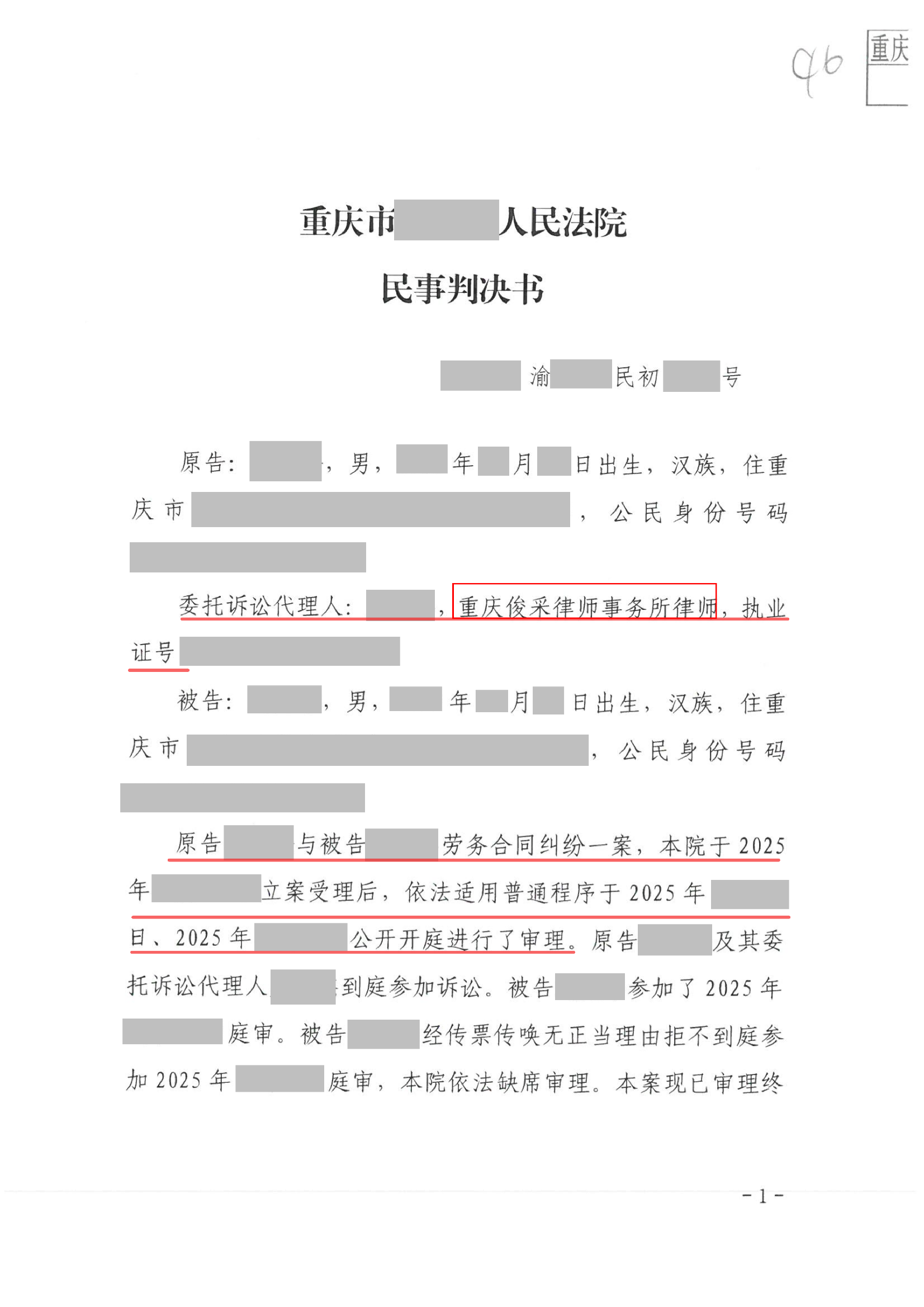 2025年8月,重庆俊采律师事务所成功代理莫先生(化名)、殷女士(化名)与柳先生(化名)之间的劳务合同纠纷案,为两位当事人争取到了应有的劳动报酬共计29000元,有效维护了劳动者的合法权益。