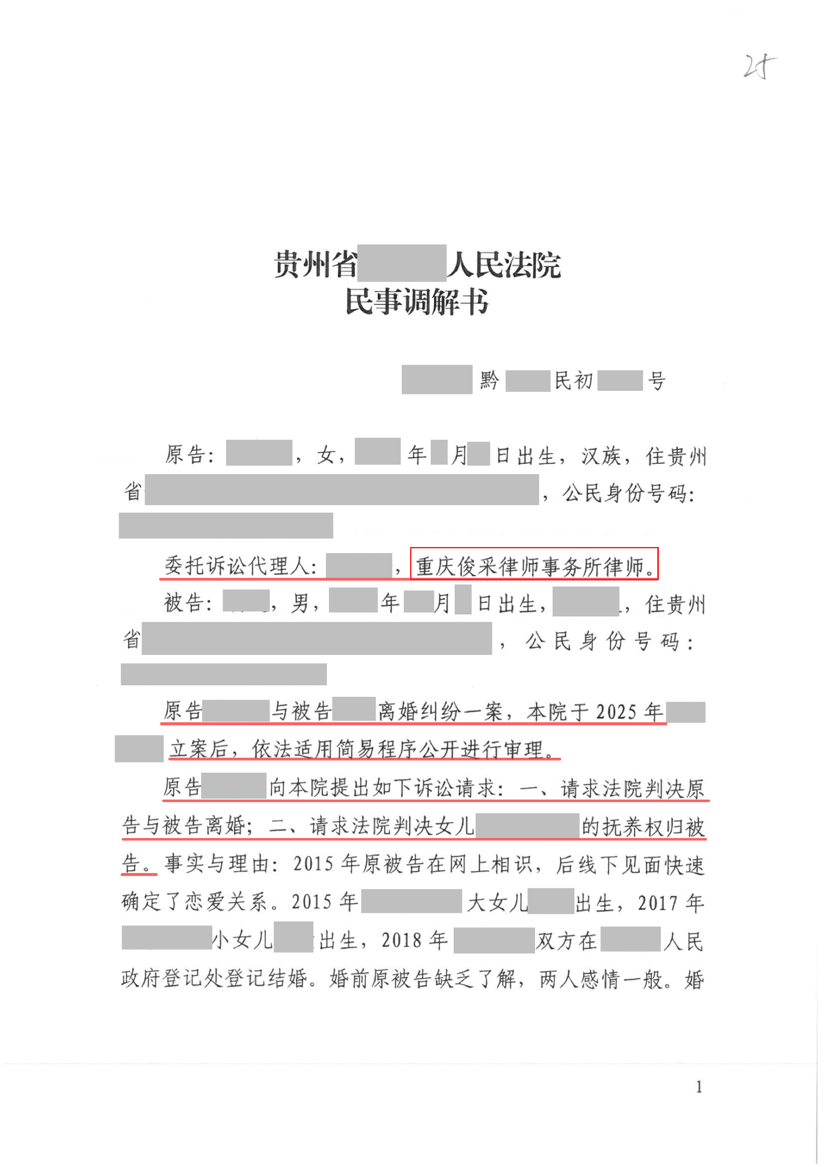 俊采离婚纠纷案例 | 2025重庆俊采离婚调解:抚养权+抚养费确定