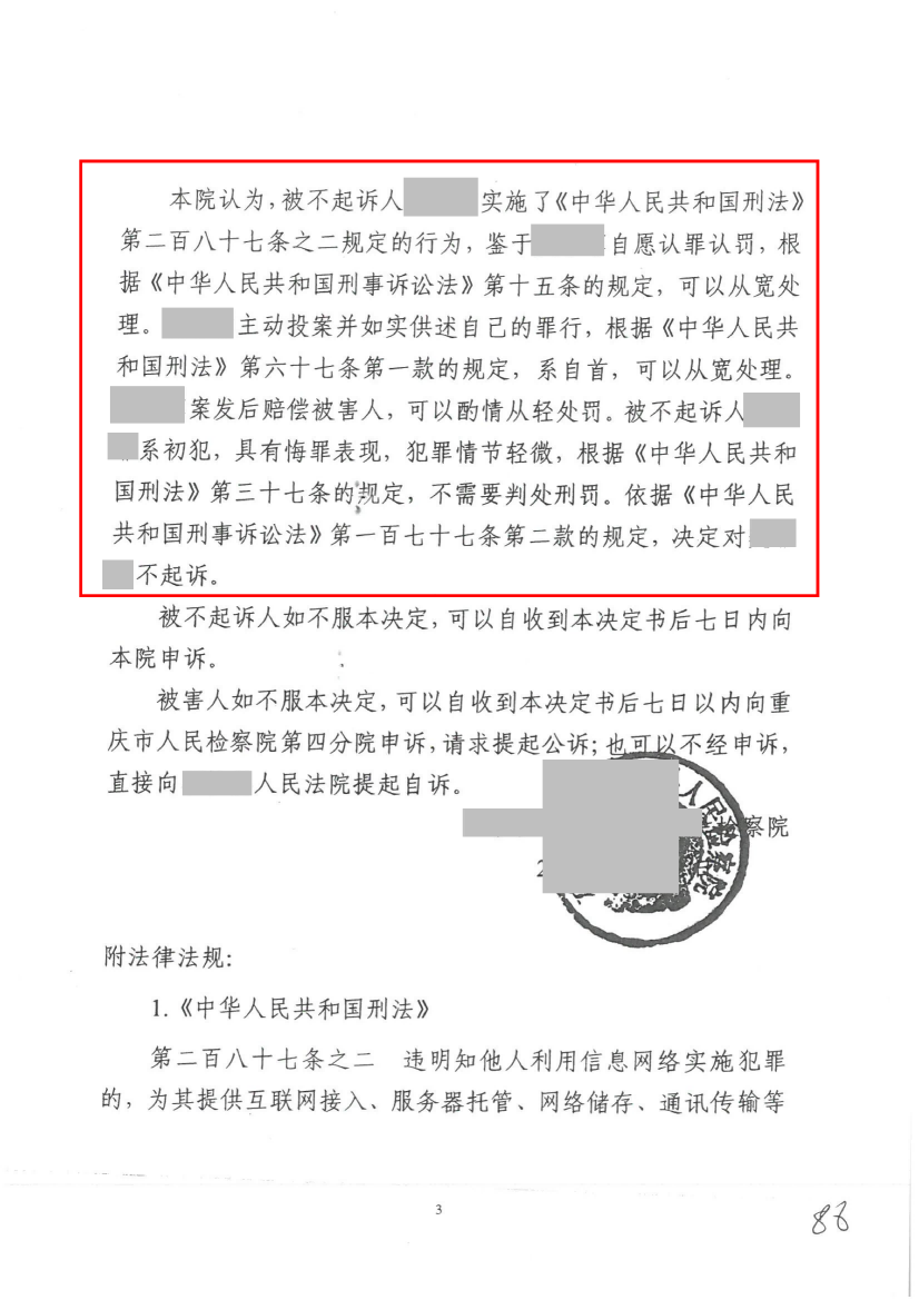 俊采刑辩案例 | 范某涉嫌帮助信息网络犯罪活动罪 律师辩护检察院给予不起诉的决定