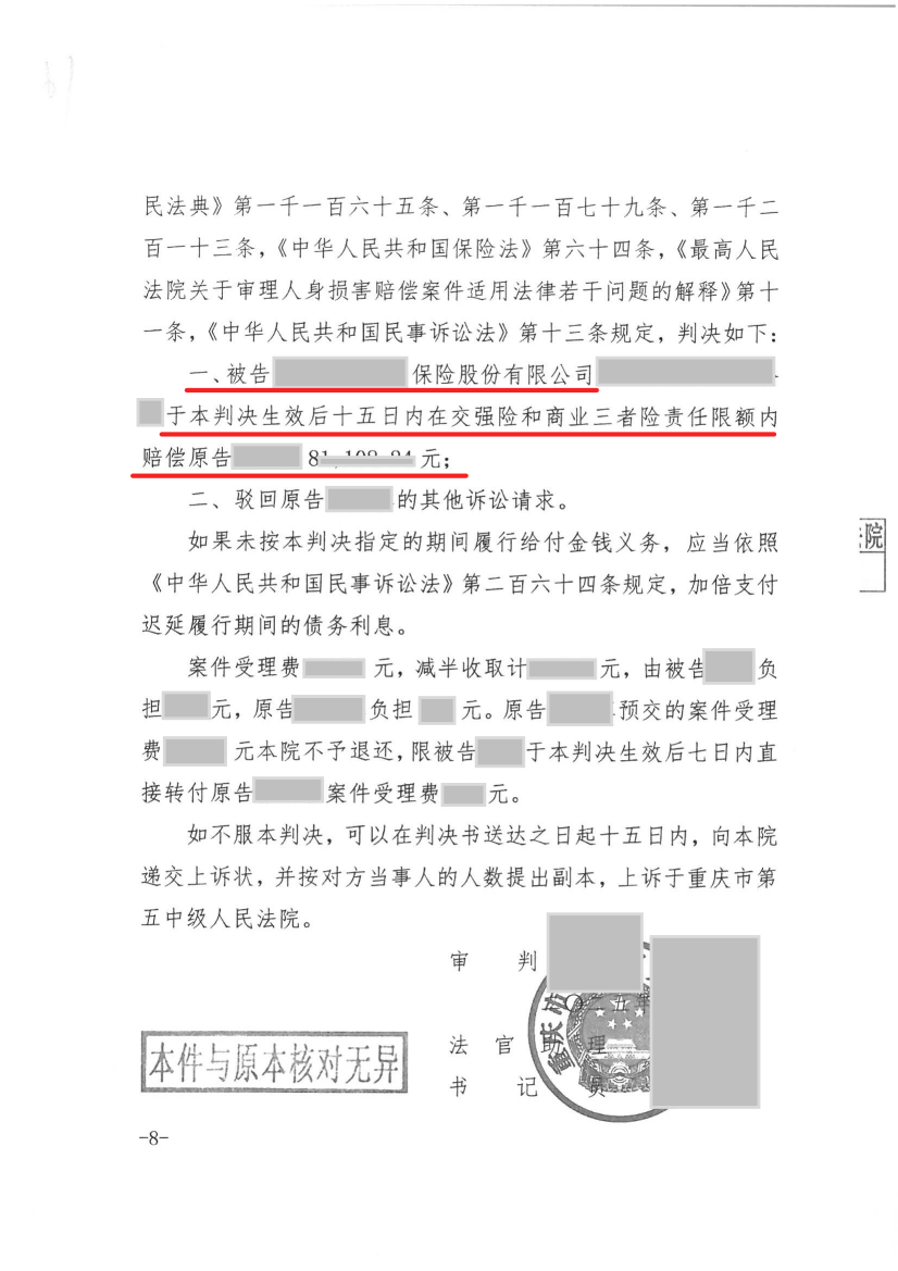 俊采机动车交通事故责任案例 | 俊采答辩委托人免于承担赔偿责任,法院全额支持保险赔付