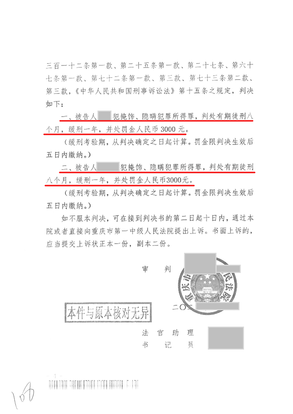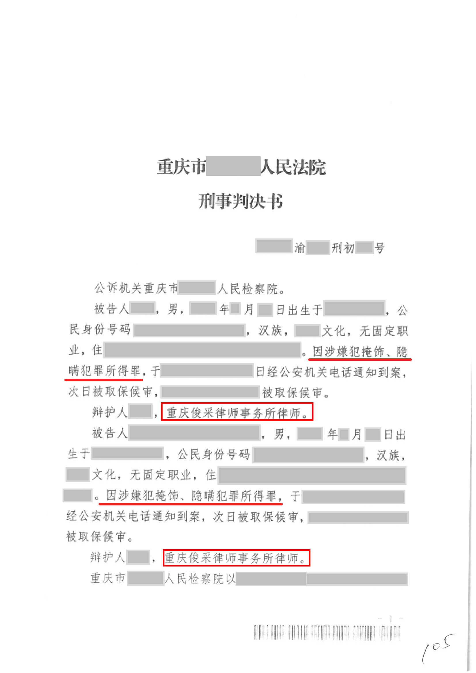 俊采刑辩案例 | 汪某、胡某涉嫌掩饰、隐瞒犯罪所得罪 律师辩护判缓刑