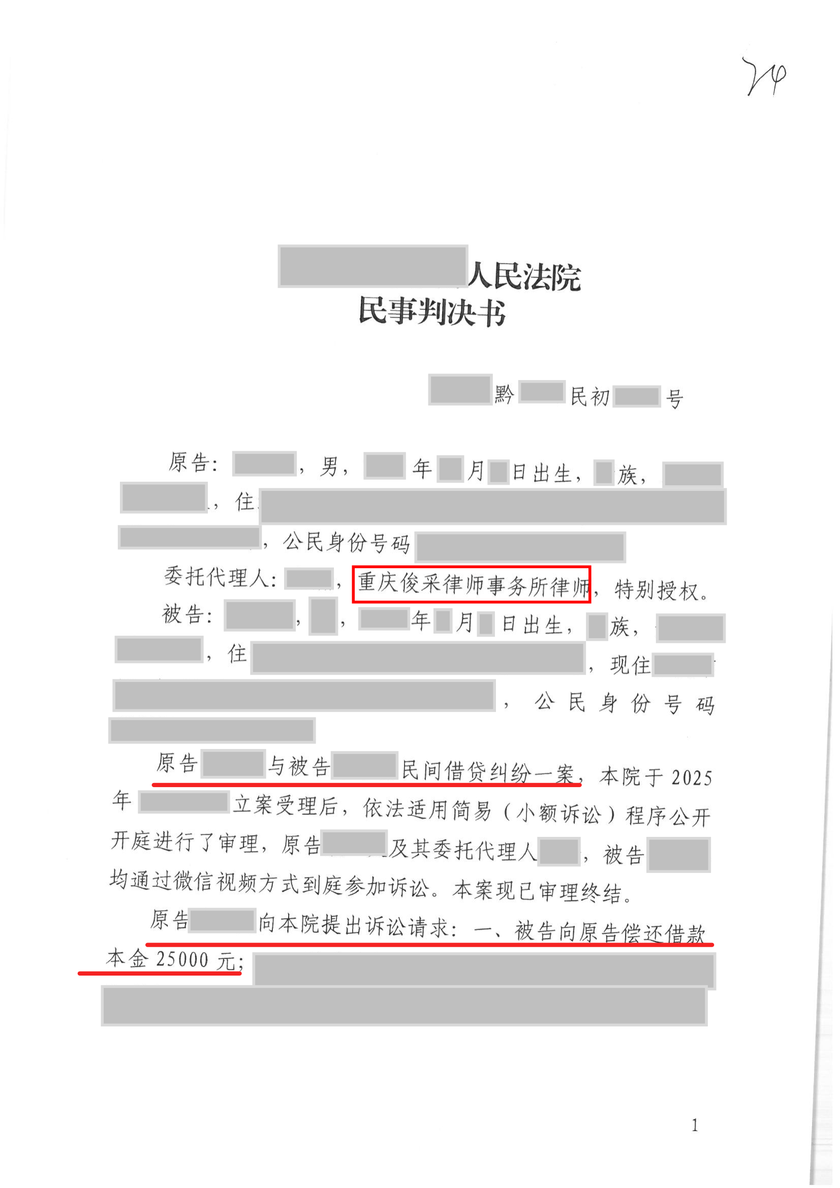 随着判决书的送达,本案正式结案。重庆俊采律师事务所通过专业的法律服务,成功为委托人小王追回了借款本金,有效维护了委托人的合法权益。本案不仅展示了律师在处理民间借贷纠纷中的专业能力,也为类似案件的处理提供了有益的参考。