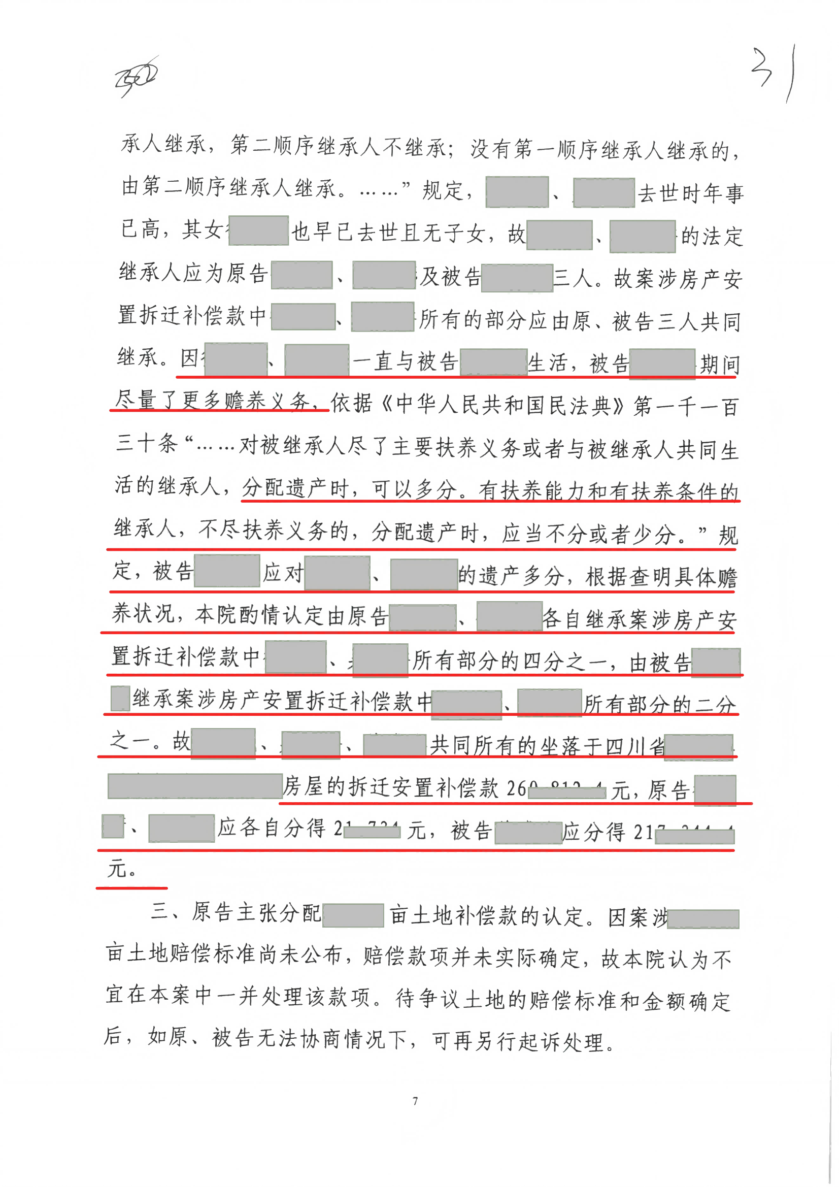 本案最终经四川省XX县人民法院审理,依法就房屋拆迁安置补偿款的分配作出判决:原告许兄、许姐各自分得2万余元,被告许先生分得21万余元,成功维护了委托人许先生的合法权益。